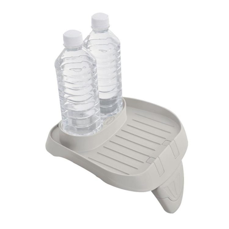Always a refreshment and some snacks at hand when you lie simmering nice and warm in an Intex PureSpa. This cup holder with tray is placed on the edge of the spa so the drinks and the food don?t come into contact with the hot water. There?s room for two drinks and some small snacks.