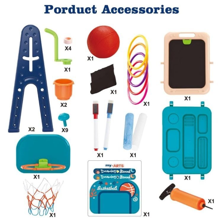 Diverse Learning & Play Hub: Elevate playtime and learning with our multifunctional table. This dynamic, double-sided board offers basketball hoop fun on one side and a magnetic writing and drawing board on the other, providing endless hours of interactive learning and play.