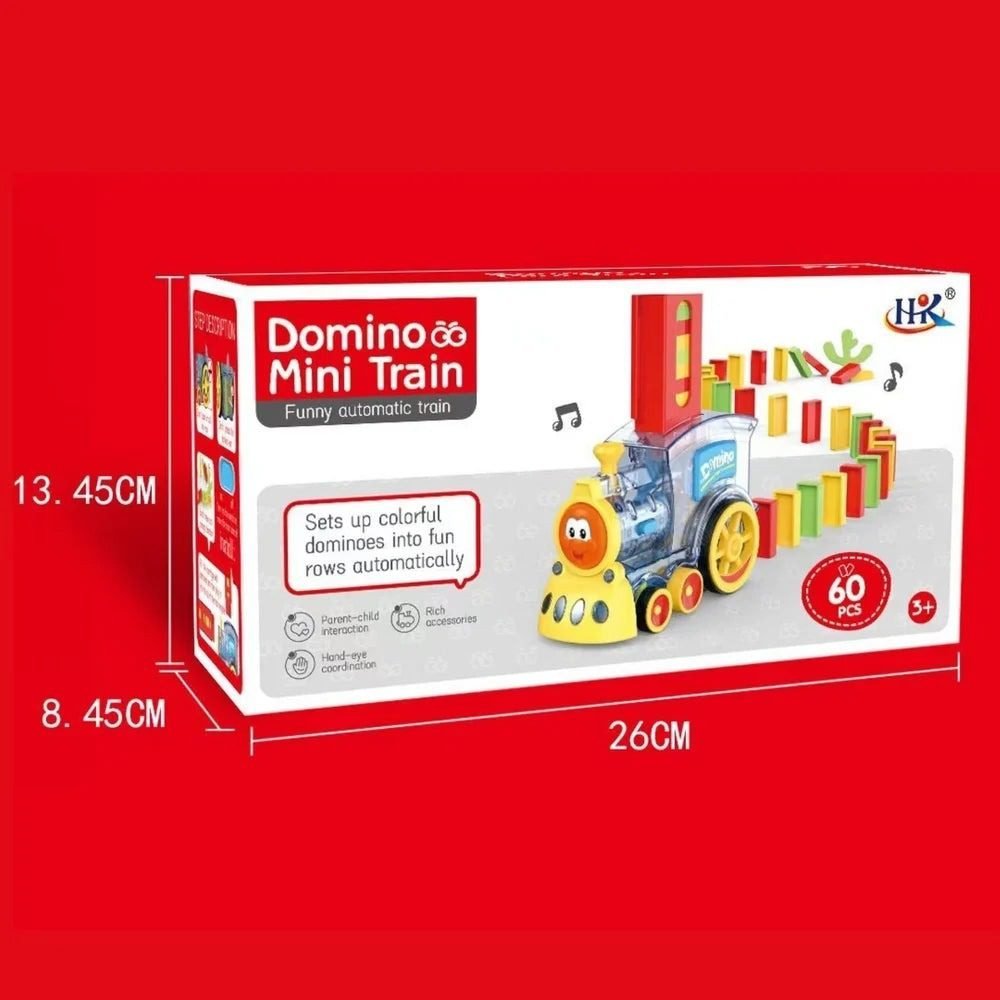 Really simulate the train operation, operating with sound and music, automatic laying dominoes. Set them up all in a row, and then push one and watch the chain effect of the dominoes tumbling over like a race.