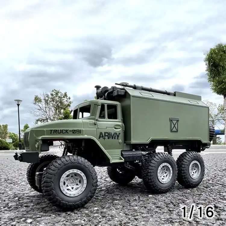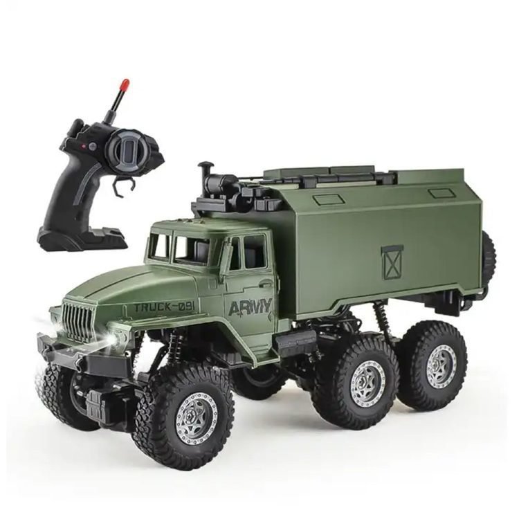 Adventure Awaits: Unleash your child’s imagination with this Cross Country Military Remote Control Truck. This 1/16 scale six-wheel climbing vehicle provides an exhilarating off-road experience, perfect for kids who love adventure and military-themed play.