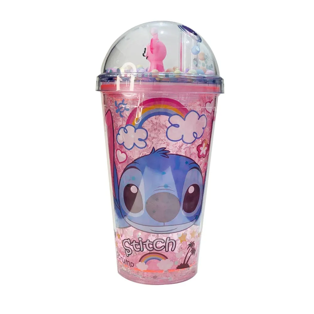 Stitch Plastic Cup With Straw 450 ML