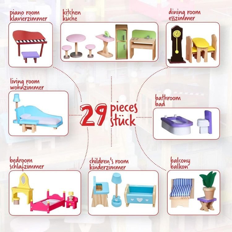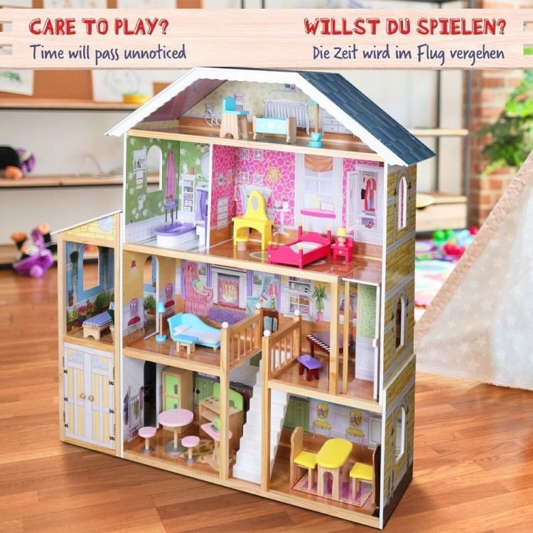 Grand Mansion Dollhouse Playset with 28 furnitures