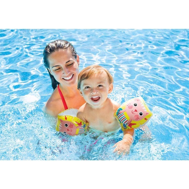 These swimming aids are designed with colorful kitten illustrations that are fun and appealing to young children.?Your little ones will love going to the pool with these Inflatable Armbands by Intex.