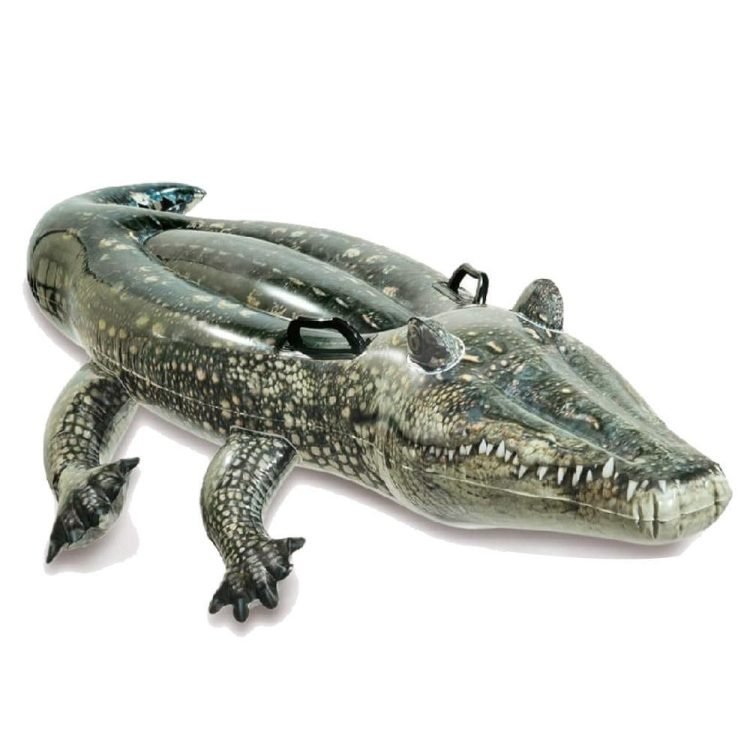 Bring a little colorful, realistic, friendly gator fun to your next pool or lake adventure with this delightful Realistic Gator Ride-On inflatable from Intex. The fun gator is made of a UV-resistant vinyl. Features room for multiple little riders and constructed of durable, 10-gauge vinyl with two heavy duty handles for extra stability. Includes repair patch kit.
