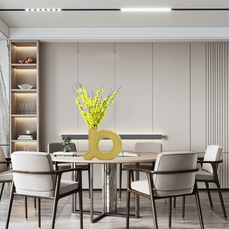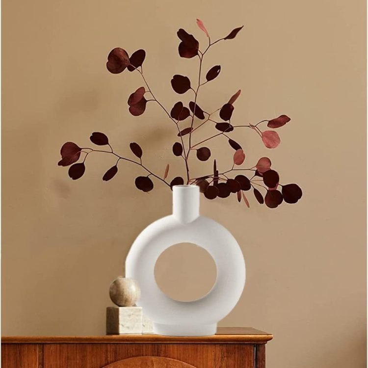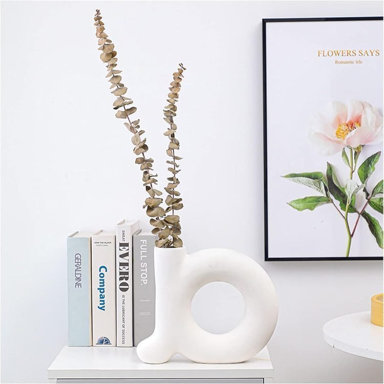 Nordic Modern Style,Nordic Ceramic Donut Vase Circular Ceramic Flower Vase Pot Modern Arts Decoration for Living Room Office Home Table