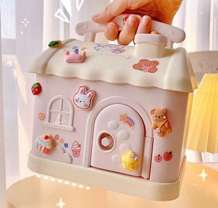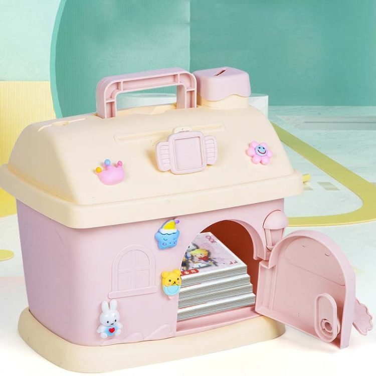 Piggy Bank Anime Cartoon Cute Money Boxes Piggy Bank with Lock and Key for Notes Coins Money Saving Box Kids Gift
