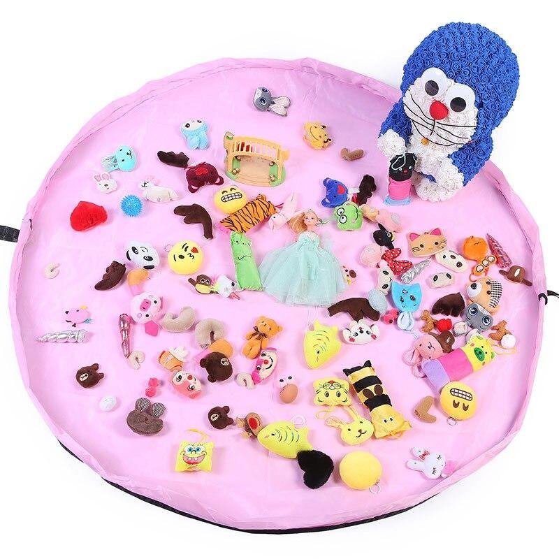 • Cleaning up and storing lego, barbies, dolls, and other toys has never been easier than with the PlayNPack toy storage mat bag!
