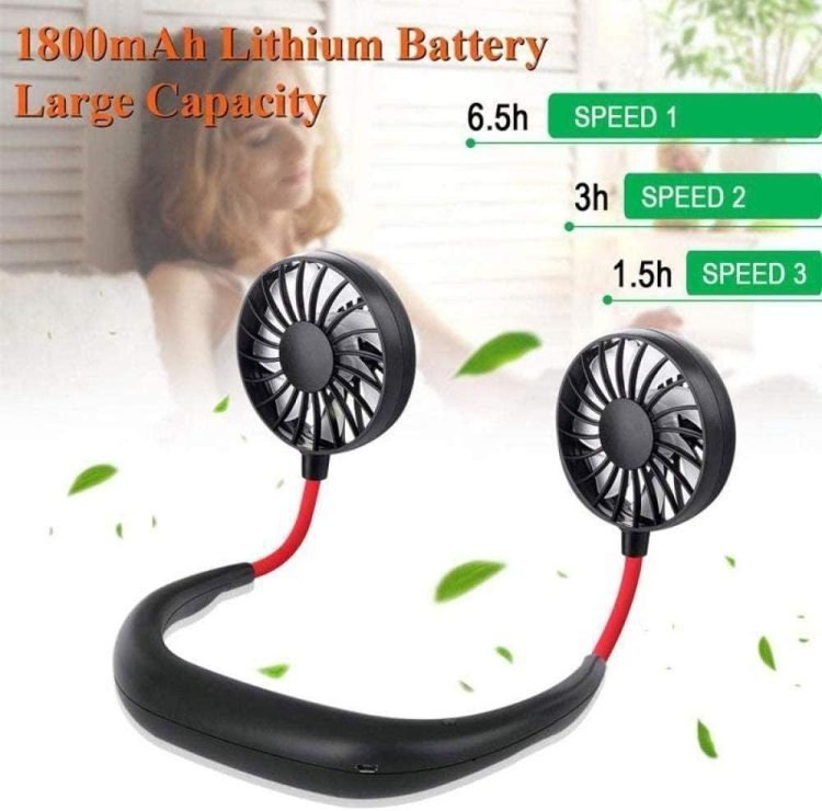 - 360? free rotation ? The ultra-quiet powerful neck fan features double heads design, and two heads can 360? flexible rotate, which allow you to adjust the best wind direction to cover your face, neck, shoulders, and chest. Perfect for indoor, outdoor, or travel use.