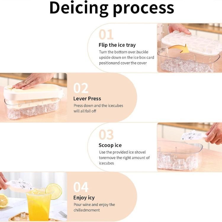 Pressing Ice Lattice Mold, Ice Cube Tray with Lid and Bin, Ice Trays for Freezer with ice scoop storage space for Cocktail Freezer Chilled Drink Refrigerator Storage