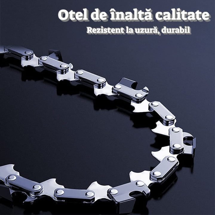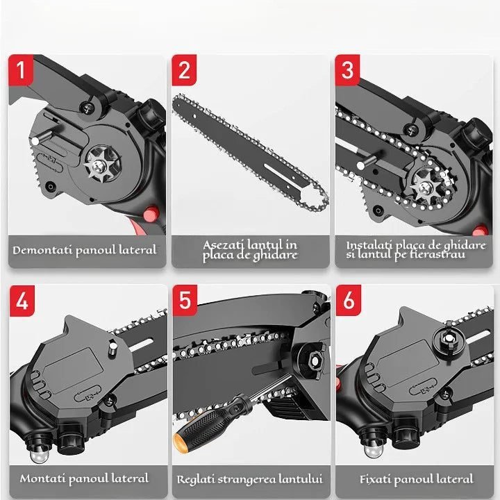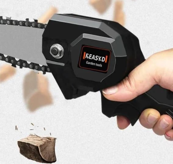 The electric chainsaw has a 1500 mAh battery, which provides up to 100 cuts after charging.