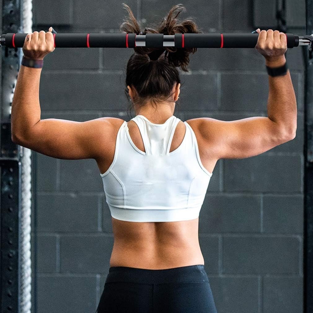 - ◆ Durable – Anti-loose lock protection,prevent rotation. Sturdy chrome plated steel bar,secure exercise trainer supporting tough workouts. When mounted properly, the fitness bar holds up to 150 kg giving you full support for pull-up and chin ups.