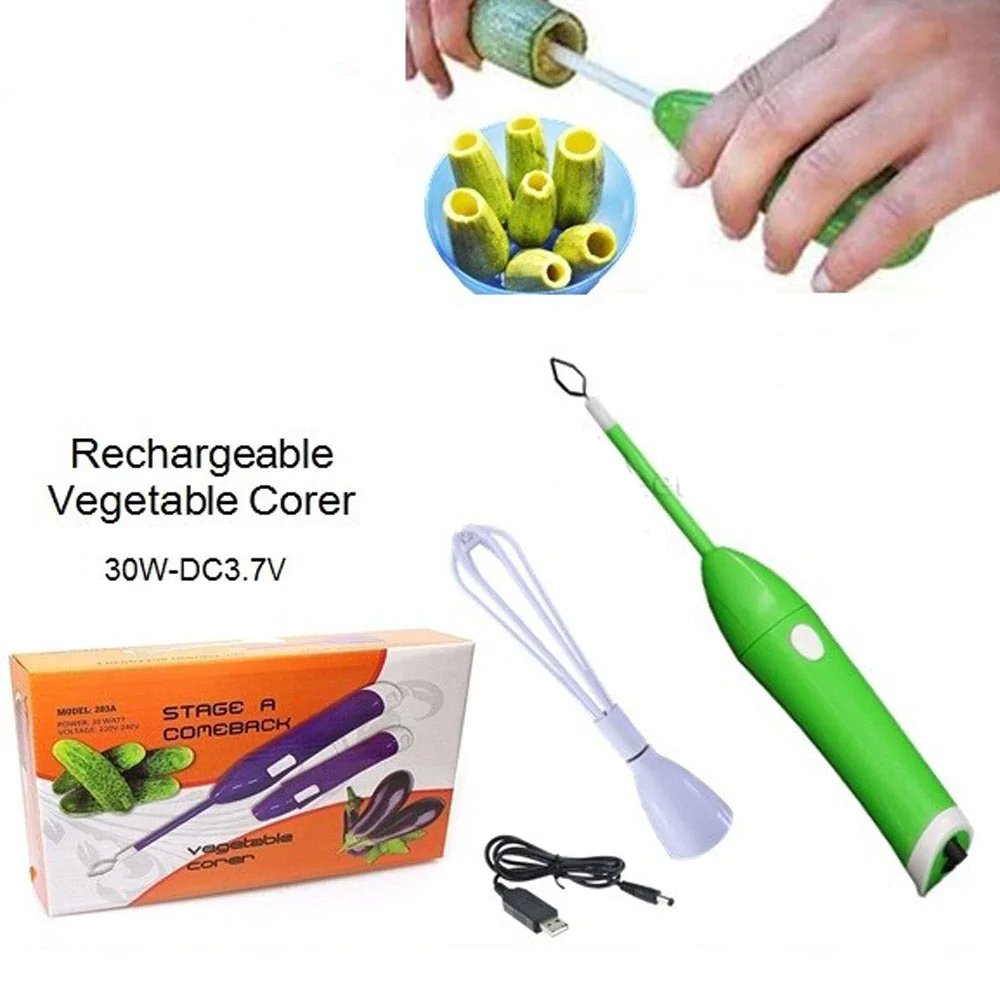 Now you can serve up the ultimate vegetarian meals with the vegetable corer. You can drill out and stuff fruits and vegetables with a little creativity. Stuff squash, tomato, carrots and more. No hassle, no waste and save time with the convenience of this vegetable corer. Vegetable corer allows you to prepare stuffed vegetables quickly and without pain. Vegetables remain whole pieces and thus very fragrant. Works for zucchinis, eggplants, tomatoes, potatoes, apples With two mixing accessories (corer & whisk) Light and small Easy to store and carry Ideal for fruit & vegetable Rechargeable lithium battery Power: 30 Watt Voltage: DC 3.7V, 220-240V Serve up stuffed vegetable without the hassle Create savory stuffed meals and desserts Small to large inserts Low noise design Variable speed control Material : Electric Components + ABS Plastic + Stainless Steel