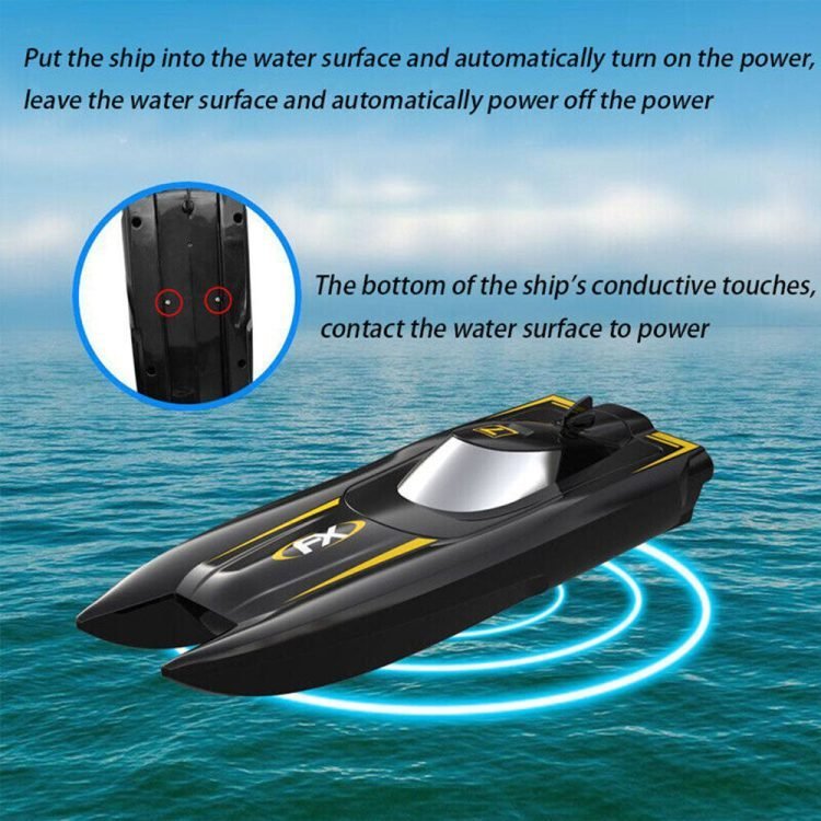 Water-cooled system prevents the motor from overheating. Safety features to protect the battery and the boat: the boat will slow down at low voltage power, reminding you to retrieve it back immediately.