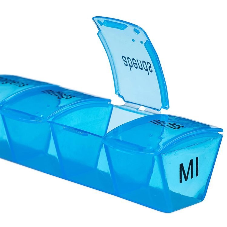 - 7 days: Pill box with 4 compartments per day for in the morning, at noon, in the evening, at night