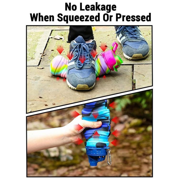 - Our silicone foldable water bottle is durable and reusable, and also anti-vibration and explosion-proof, so you don’t have to worry about it breaking or scratching easily.
