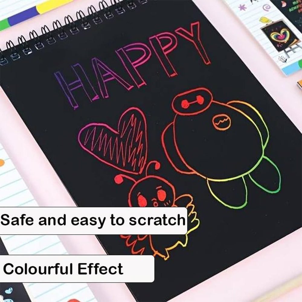 - Scratching the paper with included wooden stylus reveals a bright rainbow background. Make one-of-a-kind craft project with drawing kit paper. Imagine how impressive the kids art will be when they show it off! What a fun and exciting way to help boost children’s self-confidence. You can mount it with a picture frame and hung up on the wall or put on your desk top.The coloring pad to add some spice to your every day life.