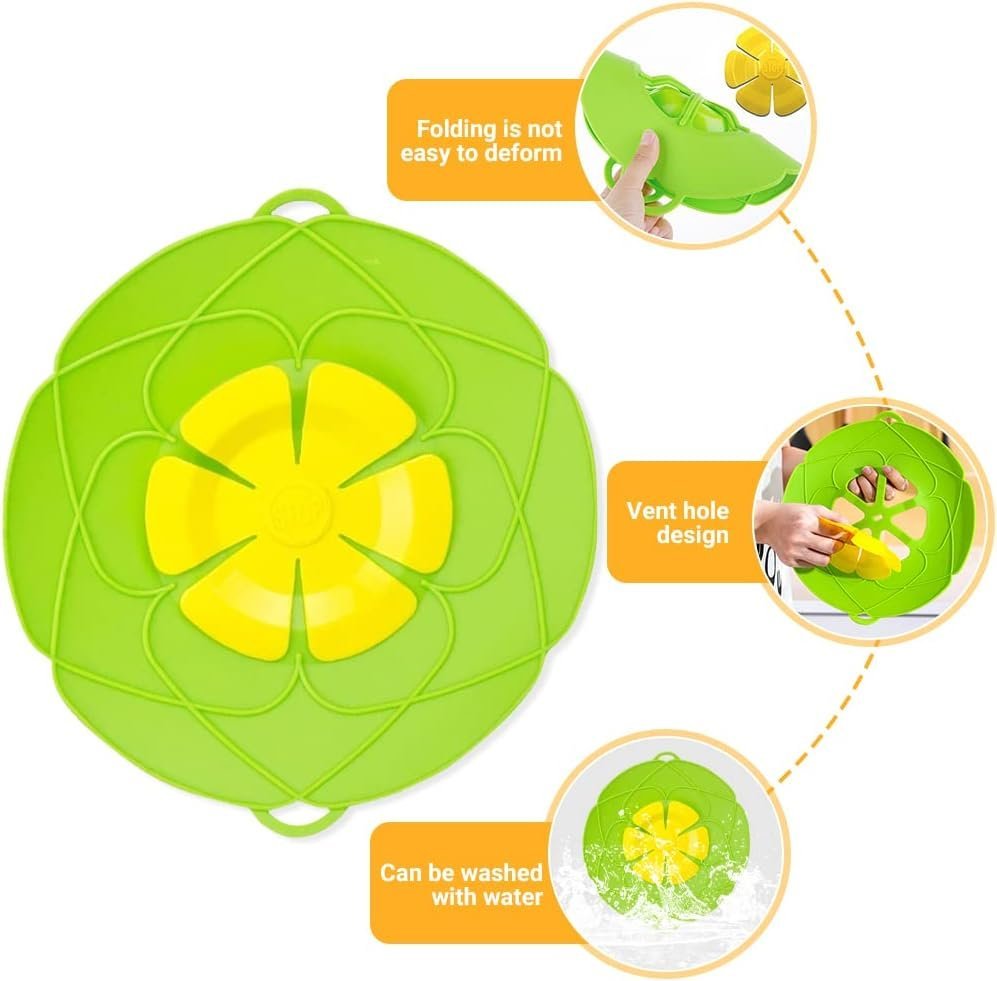 - 🍲Splatter Guard – The anti-overflow spill lid is suitable for most pots and pans. The silicone lid has a steam release port and a silicone handle for easy grip and is specially thoughtfully designed to prevent accidental burns.