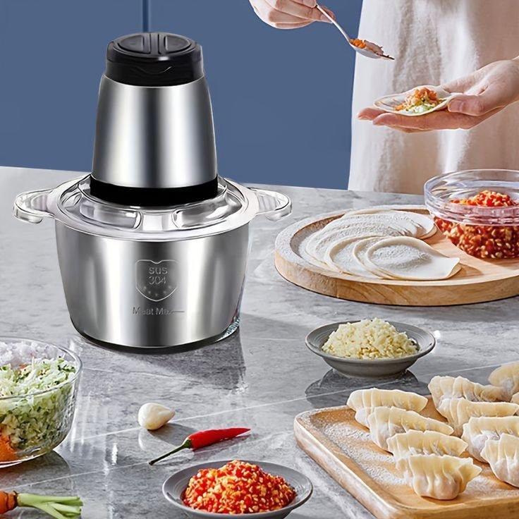 - ? 2L/3L Capacity & 4 steel blades :- Our electric food chopper has the largest 2L/3L capacity. It means you can chop a large bowl of meat or vegetables all at once.4 steel blades are sharpened, powerful and solid, they can mince different foods in a very short time, save your cutting time.