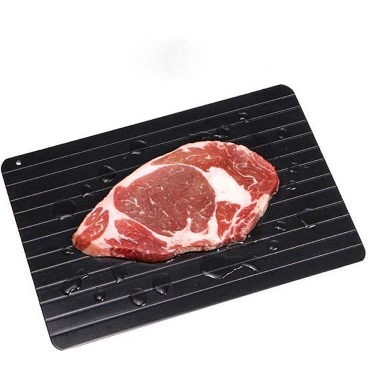 • It is easier to clean meat thawing board because of its amazing quality of aluminum and non-stick coating. Having a food-grade material, our thawing board is the safest way to defrost meat by having no chemicals, battery, or electricity.