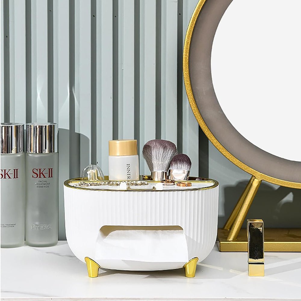 Tissue Holder Case For Office Home Decoration With Mobile Stand And Two Compartments For Jewelry Makeup Brushes