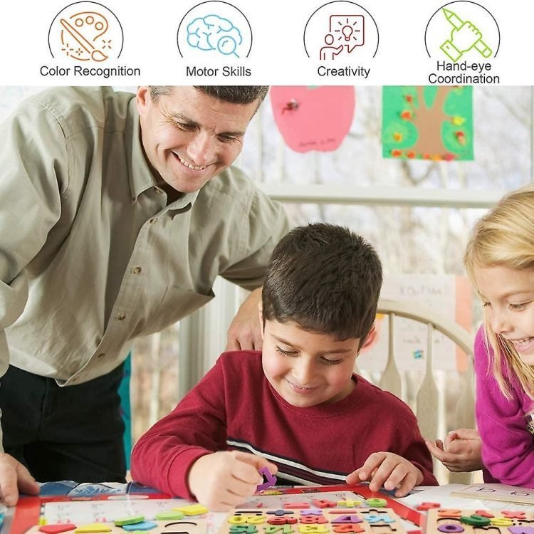 Enhance your child’s learning journey while providing them with hours of educational entertainment. Order our Vibrantly Colored Wooden Puzzle Set now and watch your child embark on a colorful adventure of shapes, symbols, and numbers!