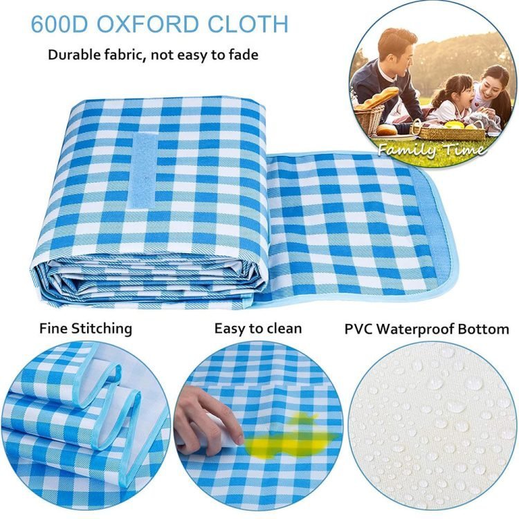 The picnic blanket is made of fluffy fabric, 2 mm pearl sponge and Peva waterproof base. Durable and thick, robust and tear-resistant, waterproof heat insulated.