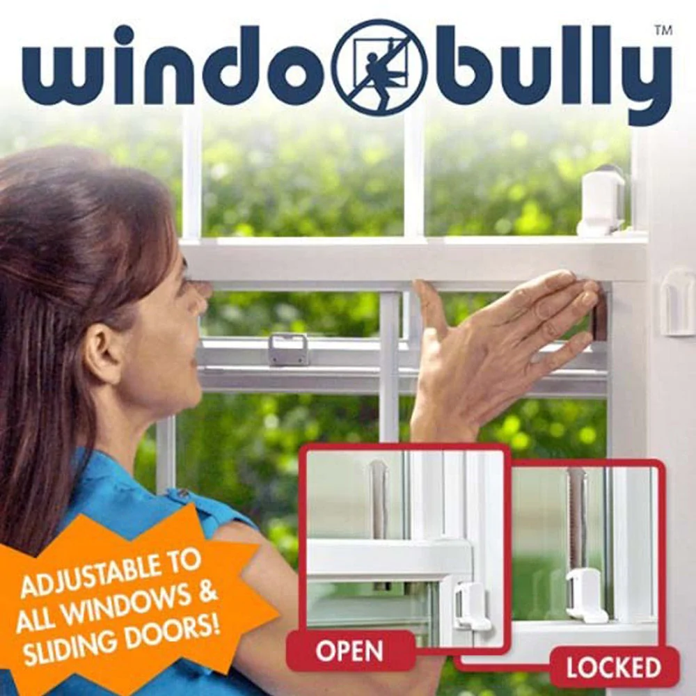 Window Bully Universally fits any sliding window or patio door. stalls in seconds-no tools required. Break in force tested up to 300lbs. 3 variable settings; locked, partially opened, or fully opened. Patent Pending technology.