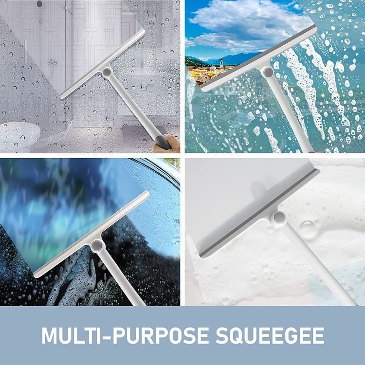 - Window and shower squeegee in a set of 2. 360? rotatable joint head, easy to lock. Ergonomic and non-slip silicone handle for optimum grip