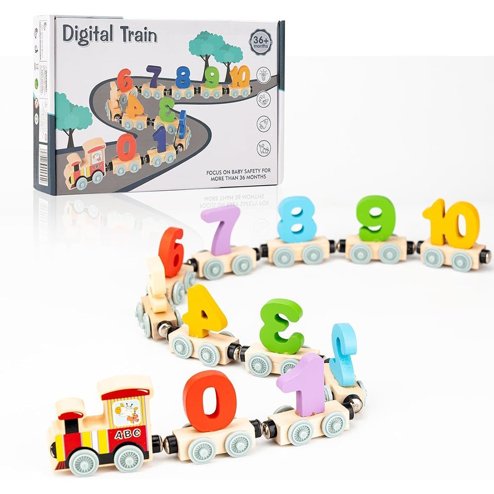 - Encourage your children to recognize the numbers on the train cars, put them in the correct order and create a series of long cars by connecting them magnetically. This train has wheels that can rotate and can also be played without rails.